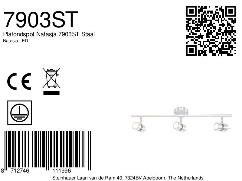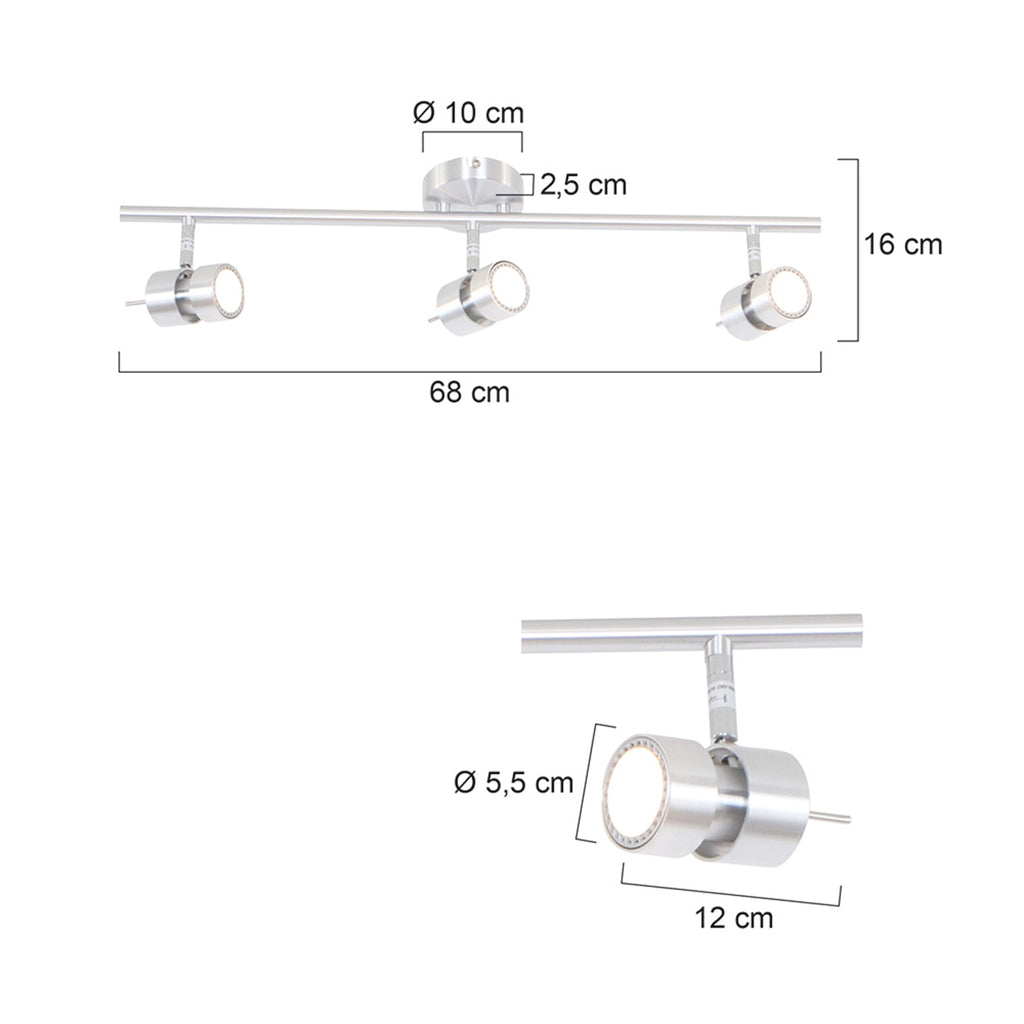 Moderne drielichts spot in geborsteld staal. De plafondspot is verstelbaar (draaibaar en kantelbaar), zodat u zelf kunt bepalen waar het licht naar toe schijnt. Voorzien van driemaal een LED-module (maximaal 3*7 watt). Inclusief Osram lampje. Verlicht elke hoek, waar nodig. De totale hoogte is 19 cm en het armatuur heeft een lengte van 68 cm. Uit de serie Natasja LED. Bestel deze spot nu online met de service en garantie van een servicepunt bij u in de buurt. 7903ST. Oude lamp was 5783ST.
